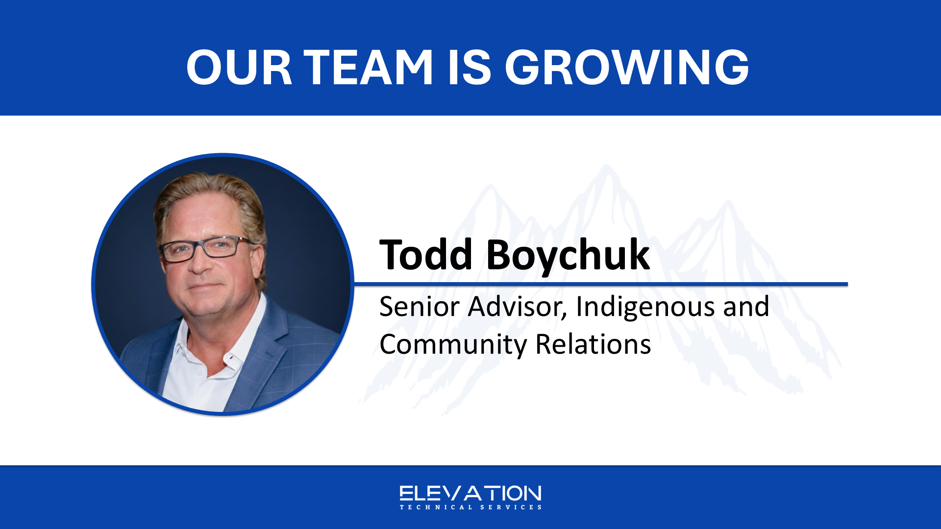 Elevation Technical Services is pleased to welcome Todd Boychuk as our new Senior Advisor, Indigenous and Community Relations.